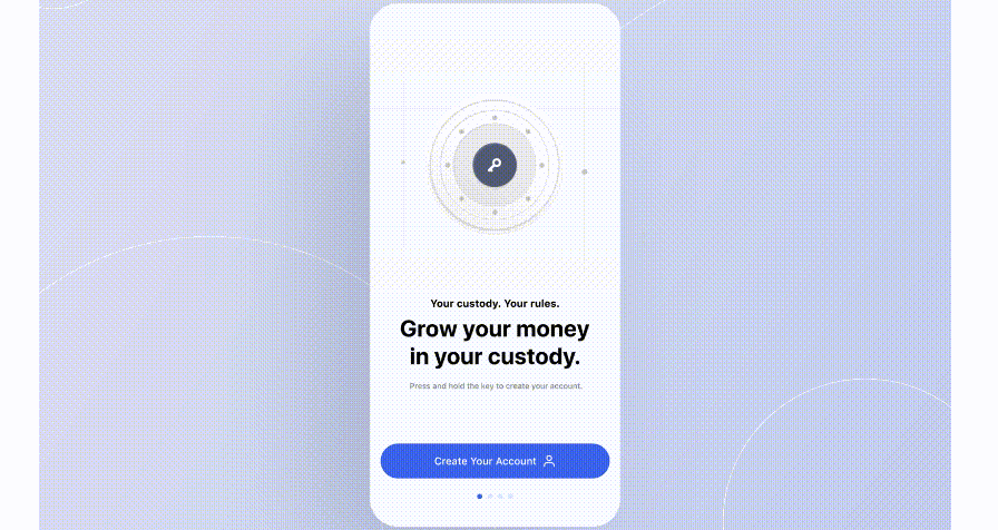 During the design process of this crypto trading app, when users click "Create Account" to enter (the page), the facial recognition and 2FA (Two-Factor Authentication) icons are displayed. Their display process is not synchronous; instead, they follow a sequential order—one step and part appears first, followed by subsequent parts—presenting a procedural state.