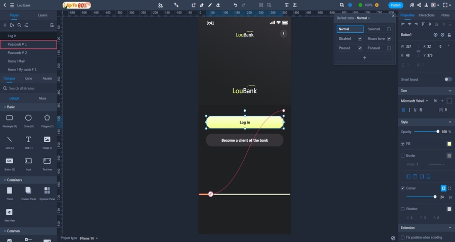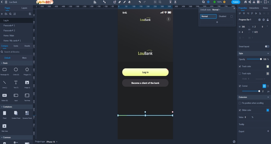 For example, if I need to add a pre-login loading animation to this page, I will first incorporate a progress bar into my prototype. Then, I will add a rectangle, set the dimensions and colors for both elements respectively, and proceed to the next design step.