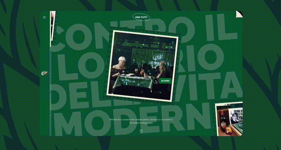 Before a new section slides into view, a subtle arrow animation suggests the direction to scroll, guiding users naturally through the page flow.