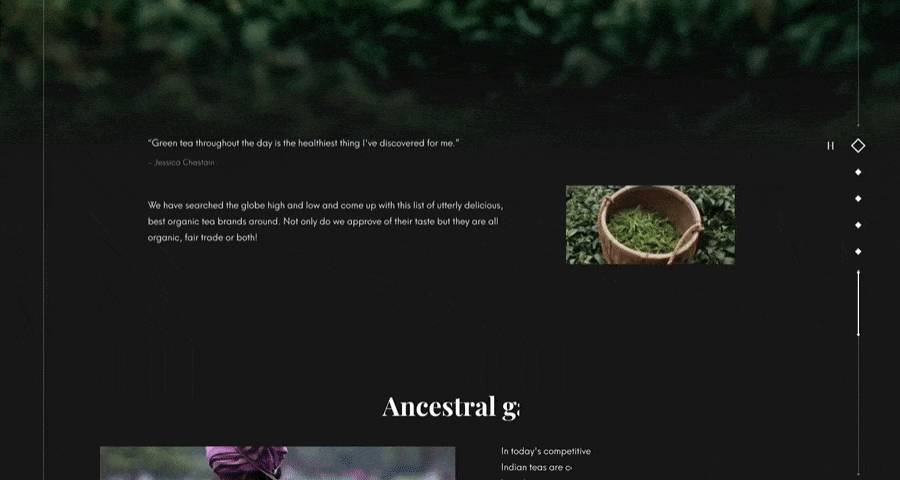 On the Tea Manufacturer Website, as users scroll down, tea product images and descriptive text fade and slide into view sequentially, creating a visual hierarchy that draws attention to each section. The motion is subtle and well-timed, making the content feel interactive and engaging while keeping the user oriented. This technique ensures that users can focus on one piece of information at a time, improving comprehension and engagement across the page.
