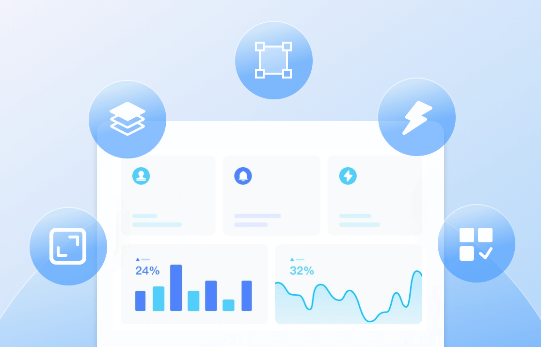 Quick start any design projects in seconds with premade UI components, icons and asset libraries.