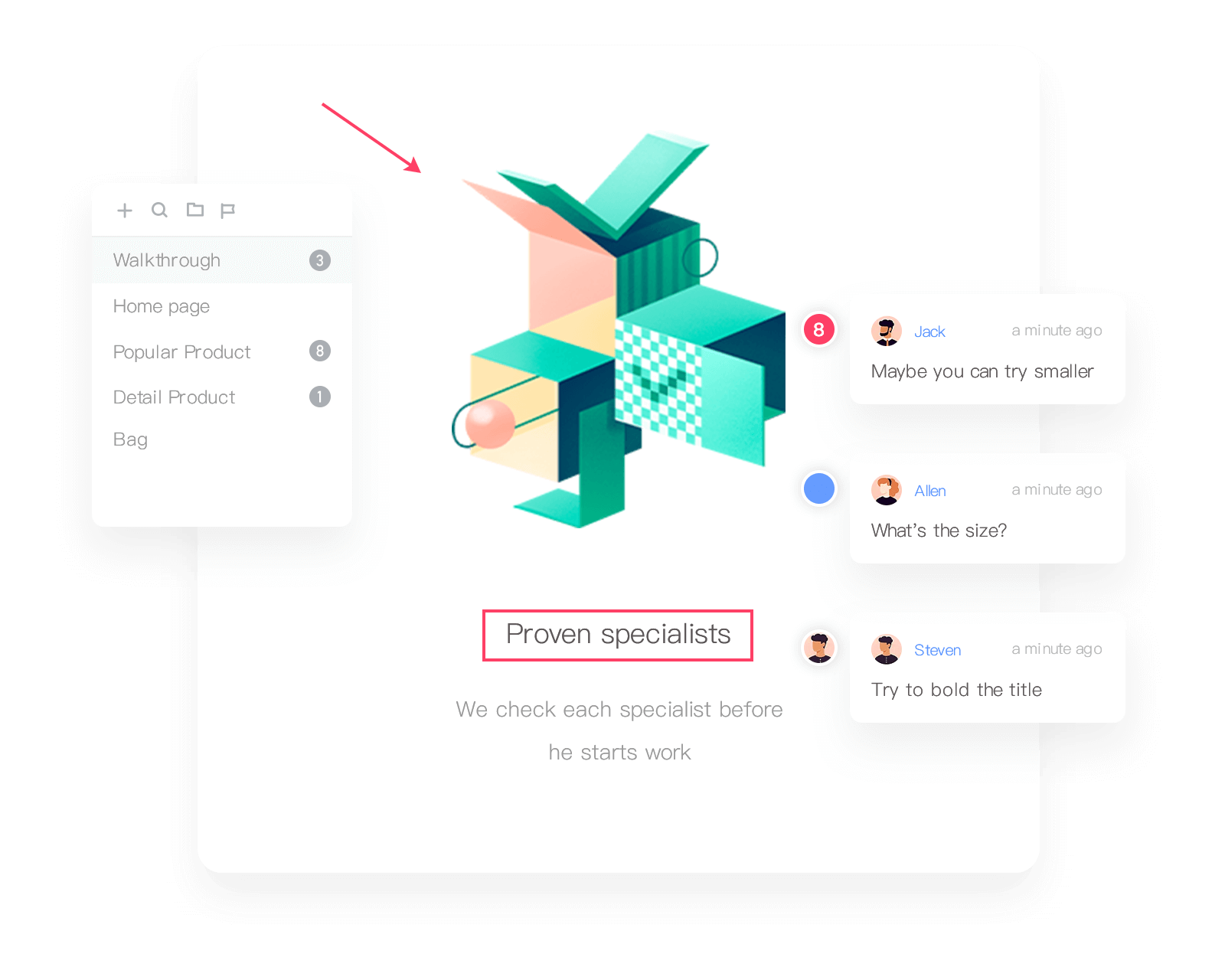 So, your entire team can gather designs from different tools, share and review together, leave comments and even hand off specs, assets and code snippets instantly in one place.