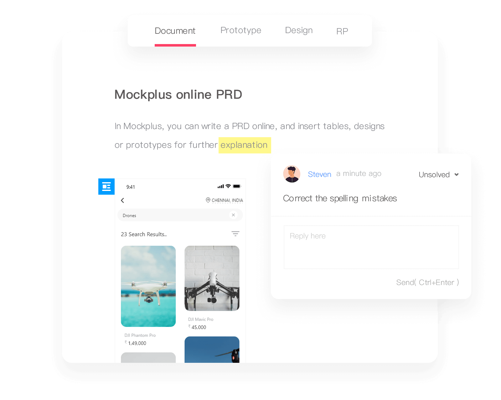 Apart from the online prototyping tool, Mockplus integrates with Sketch, Photoshop, Adobe XD and Sketch, allowing you to sync designs from those tools just like Zeplin. Axure prototypes can also be imported for futher collaboration.